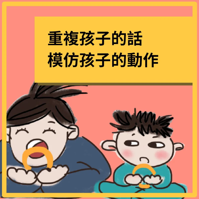 我們喜歡跟與自己志趣相同的人做朋友,孩子也喜歡和自己接近的人相處。套用心理學界最著名的研究,模仿孩子的動作,讓孩子覺得你跟他是一樣的;重複孩子的話,讓孩子知道自己說的話被別人理解,增加孩子語言溝通的自信。孩子愈有自信,便愈願意表達自己,而喜歡表達自己想法的孩子,自然而然有更多學習使用語言溝通的機會,自然也能將語言學得好。